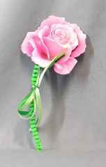 Открытка 8 Марта А5. ПР 28051. Роза розовая на проволоке лента