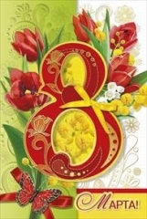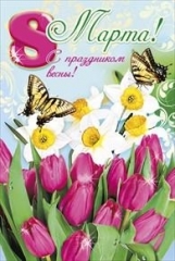 Открытка 8 Марта А5. Мир открыток 2-04-8085А С праздником 8 Марта