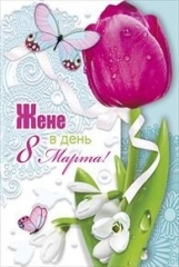 Открытка 8 Марта А5. МП 082. 274. Жене в день 8 Марта Блес