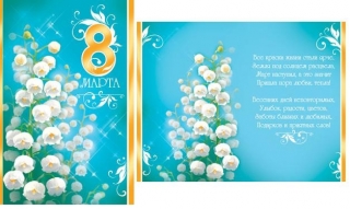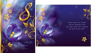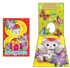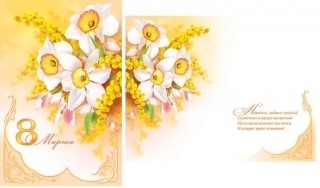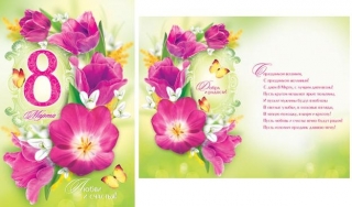 Открытка 8 Марта А5. Мир открыток 2-01-8144А С праздником 8 Марта Фол
