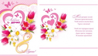 Открытка 8 Марта А5. Мир открыток 2-46-8390А Любимой дочке 8 Марта Блес