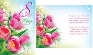 Открытка 8 Марта А5. ИП 80. 834. 00. 8 Марта мамочке Фол