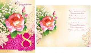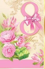 Открытка 8 Марта А5. ИП 80. 643. 00. С праздником 8 Марта Фол