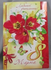 Открытка 8 Марта А5. МП 082. 313. Учительнице в день 8 Марта Блес