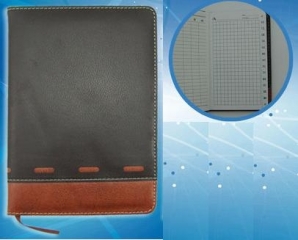 Книжка записная ДМ 80*150. 592. натуральная кожа в линейку с алфавиткой черная Ассорти