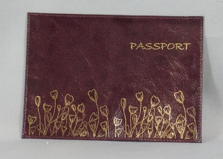 Кожа Обложка для паспорта О-8-03. бордо выдавленный с рисунком Цветы