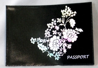 Кожа Обложка для паспорта О-8-03. черная фольга с рисунком Цветы