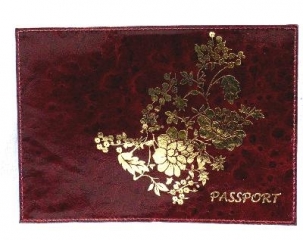 Кожа Обложка для паспорта О-8-03. рубиновая фольга с рисунком Цветы