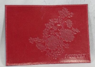 Кожа Обложка для паспорта О-8-03. красная выдавленный с рисунком Цветы