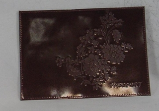 Кожа Обложка для паспорта О-8-03. коричневая фольга с рисунком Цветы