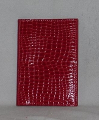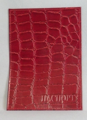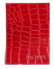 Кожа Обложка для паспорта 11К крокодил красный скат