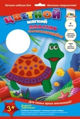 Набор для творчества АППЛИКА Пластик мягкий цветной самоклеющийся А4. 4 цвета Черепашка