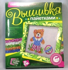 Набор для вышивания LORI пайетками Мишка с мячиком