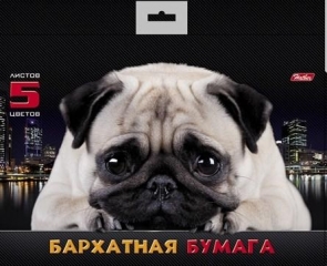 Бумага цветная бархатная А5. 5 листов пятицветная ХАТБЕР европодвес Мопс