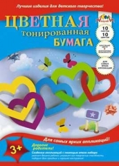 Бумага цветная А4. тонированная 10 листов 10 цветов АППЛИКА Сердечки