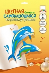 Бумага самоклеющаяся А4. 8 листов 8 цветов АППЛИКА перламутровая Дельфин