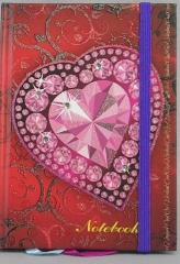 Блокнот твердая обложка А6. 80 листов КТС на резинке стразы c блестками Алмазное сердце