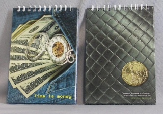 Блокнот твердая обложка А6. 60 листов Полиграфсоюз клетка на гребне сверху c блестками Деньги ассорти