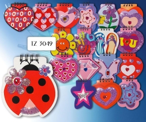 Блокнот на на гребне 115*115. TwSt в линейку с аппликацией c блестками Сердечки ассорти