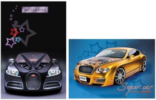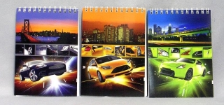 Блокнот А6. 40 листов ПЗ в клетку на гребне картонная обложка лак Роскошное авто ассорти