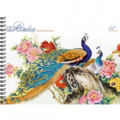 Альбом для рисования 40 листов ЭКСМО на гребне картонная обложка лакированная с тиснением фольгинированный Павлины и цветы 1