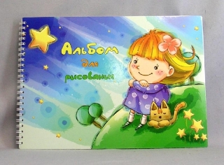 Альбом для рисования 40 листов ИДФ на гребне картонная обложка лакированная Девочка с котом АЛБ-40-11. БС60 1