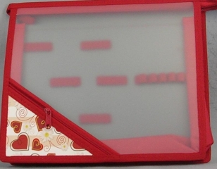 Папка для труда Оникс 2 отделения А5. молния сверху Сердечки красные пластиковая в пластиковой упаковке