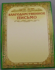 Грамота А4 ЛиС. ОГ-615. Благодарственное письмо(Россия)