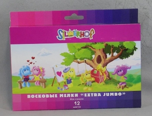 Мелки восковые 12 цветов SILWERHOF Extra Jumbo Пушистики утолщенные картонный блистер