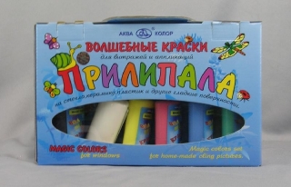 Краски витражные плен. АКВА. 6цв. 300мл. Прилипала. к/бл
