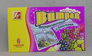 Краски витражные плен. ЛУЧ. ""Витраж"" 6цв. 135гр. флуор. блест. к/у.