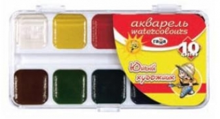 Краски акварельные медовые 10цв. ГАММА. Юный художник. б/к п/бл