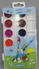 Краски акварельные медовые 12цв. РОСМЭН Смурфики. п/бл.