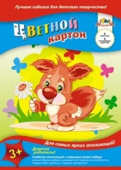 Картон цветной А4. АППЛИКА. 6л. 6цв. Щенок 1