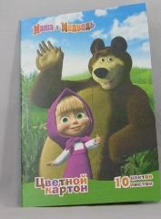 Картон цветной А4. РОСМЭН 10л. 10цв. Маша и Медведь. ассорти 1