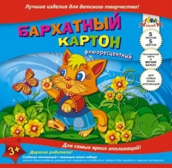 Картон цветной бархат. А5. АППЛИКА. 5л. 5цв. Кот 1