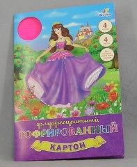 Картон цветной гофрир. А4. ЭКСМО 4л. 4цв. флюоресц. Принцесса и бабочки 1