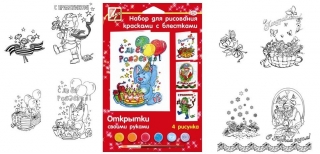 Набор для рисования ЛУЧ краской 6 цветов 4 рисунка Открытки своими руками к/бл