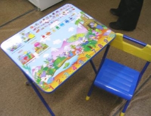 Игрушечная Мебель металлическая ДЭМИ Набор N 2. 2 предмета Стул стол Медведи . синяя