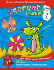 Бумага цветная А4. 16л. 8цв. АППЛИКА. Собачка и бабочка