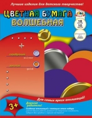 Бумага цветная волшеб. 18л. 10цв. А4. АППЛИКА. Мозаика. Кружочки(золото+сереб)