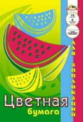Бумага цветная для аппликаций А4. 16л. 8цв. АППЛИКА. Арбуз
