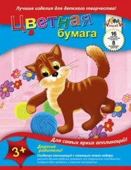 Бумага цветная А4. 16л. 8цв. ЛИЛ. Котик