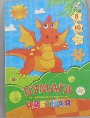 Бумага цветная двухсторонняя А4. 16 листов 8 цветов ЭКСМО офсет Зверушки Веселый дракон