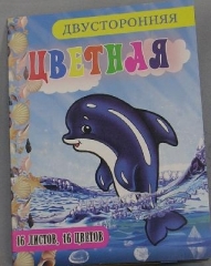 Бумага цветная двухсторонняя 16 листов 16 цветов А4. БРИЗ Дельфинчик