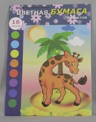 Бумага цветная двухсторонняя 16 листов 8 цветов А4. БРИЗ Жираф