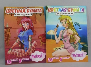 Бумага цветная А4. 16 листов 8 цветов АЛЬТ Мультики Ассорти