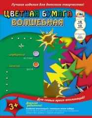 Бумага цветная волшебная 18 листов 10 цветов А4. АППЛИКА Мозаика Звездочки золото сереб