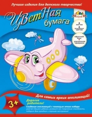 Бумага цветная А4. 8 листов 8 цветов АППЛИКА Самолетик и стрекозы