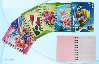 Блокнот на на гребне А7 . 80 листов MIRACULOUS в линейку с аппликацией Цветы ассорти